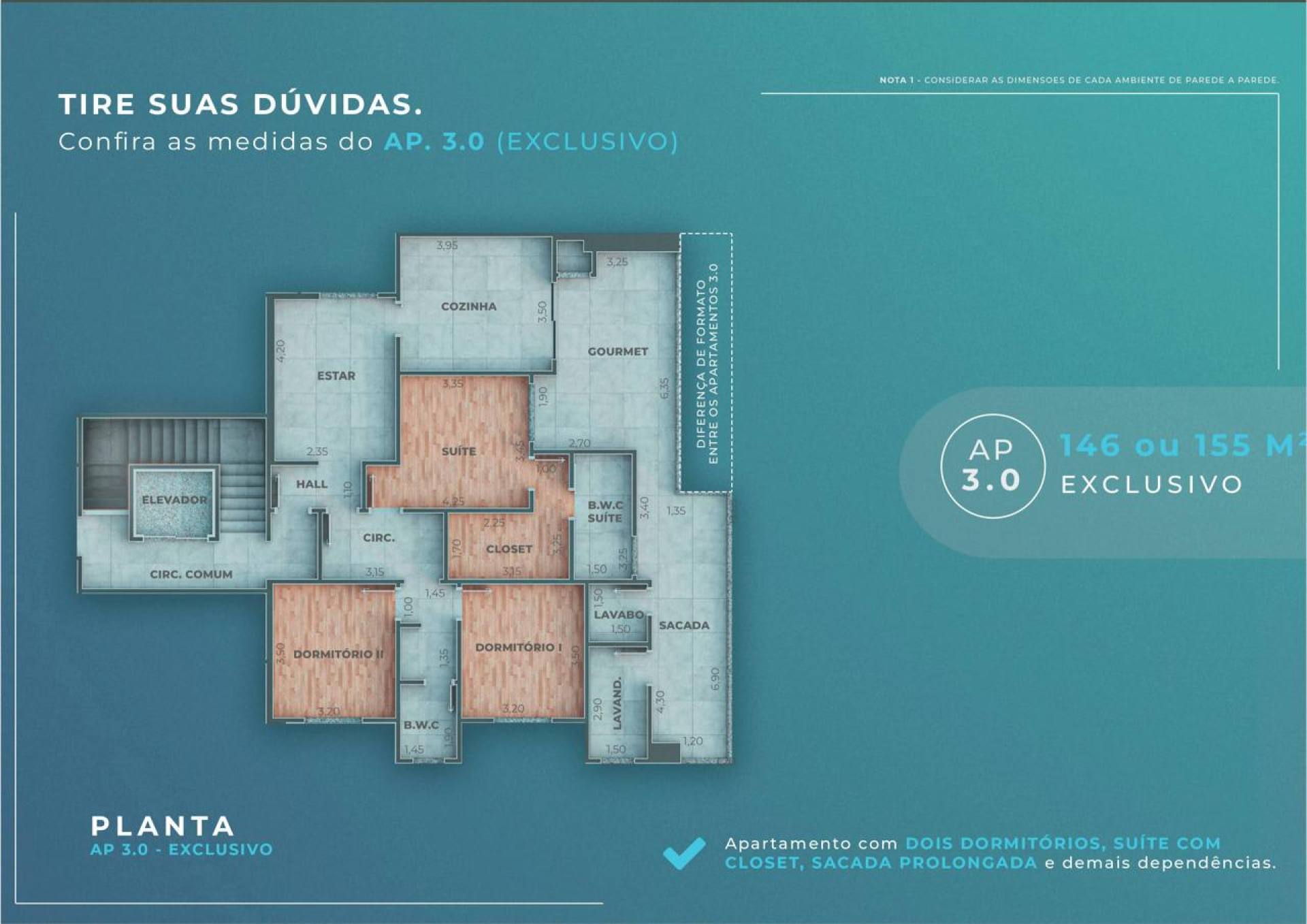 Apartamentos de 87m² a 155m²